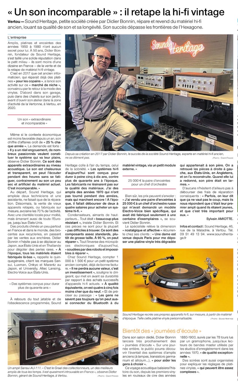 Publié sur DAN FRAN Une belle ecoute et les consils qui vont avec.Publié sur Philippe Q. Mon ampli marantz 2238b, qui était en panne, a retrouvé une seconde jeunesse. Réparation rapide à prix très raisonnable. Un grand merci à toute l’équipe !Publié sur Alain Renaud Excellente adresse pour la réparation de matériel ancien. Accueil sympathique, grande compétence au regard du résultat : mon ampli donc la marque est peu connue et a maintenant disparu depuis plus de 10 ans, a malgré tout été parfaitement réparé en quelques jours. Je recommande.Publié sur Jean-François QUERE Rapide passage pour déposer du matériel de mon grand père en forme de dons. Autant que ça serve. Magasin qui m'a paru très sérieux.Publié sur Jaja Launay Merci pour votre professionnalisme, rapidité et précision dans la réparation de mes enceintes focal solo6be. Merci pour ce petit moment d’écoute dans l’auditorium .Publié sur Christophe Favreau Super accueil, très à l'écoute. Je suis venu pour trouver des fiches très spécifiques ils ont bien cherche et trouvé. Très satisfait je recommande.Publié sur Brice R Professionnel, sérieux👍Publié sur Elsa Guihery Une belle enseigne avec un personnel très agréable, à l'écoute, réactif et compétent dans le domaine. Je recommande ✅Publié sur Nico Boutique de professionnels passionnés, heureusement qu'il existe encore ce genre d'endroit pour continuer a faire vivre la musique. Ils sont compétents en plus d'être sympathique, merci !Évaluation Google : 4.7 sur 5, Basée sur 195 avis